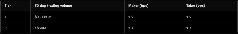 - Options: Will change from 2.5 bps to 1.5 bps for both maker and taker